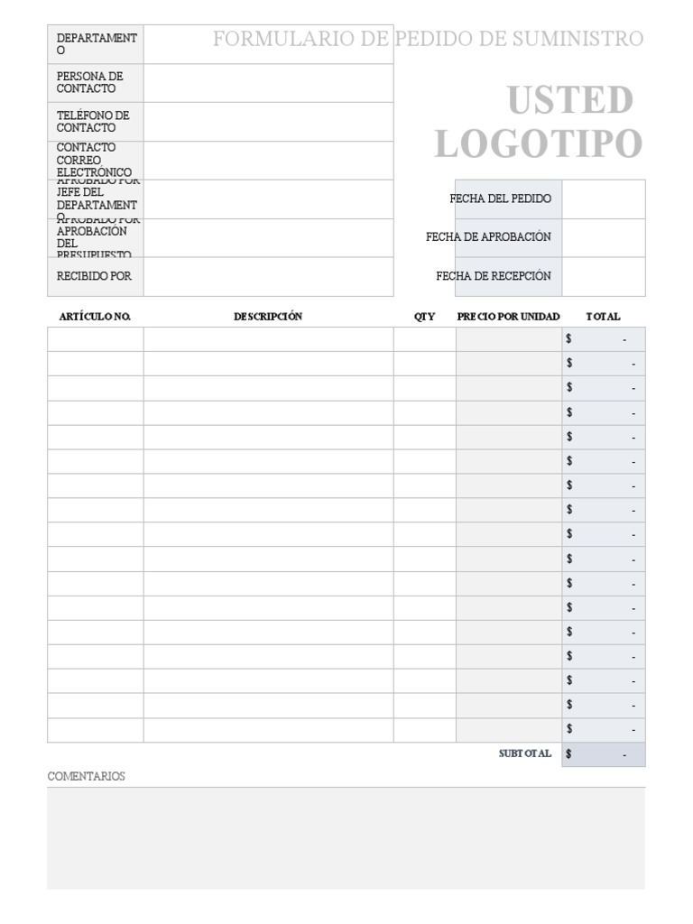 Fillable SUPPLY Order Form, Excel Printable, Editable, Customizable