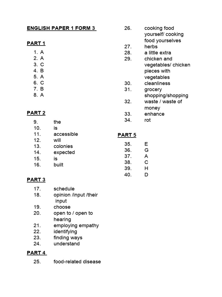 Answer English Paper 1 Form 3 PDF