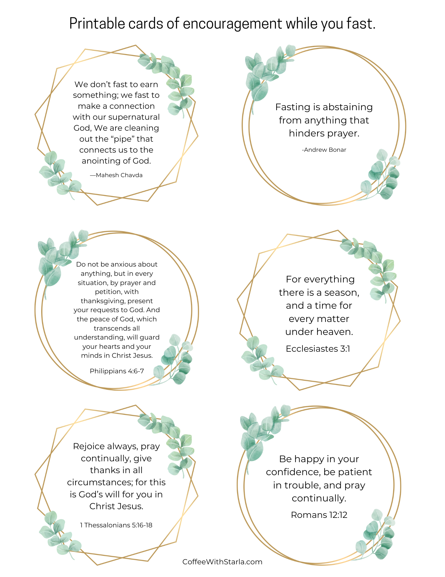 Printable Cards of Encouragement When Fasting