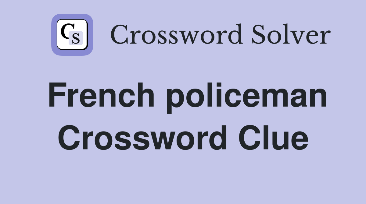 French policeman is a crossword puzzle clue that we have spotted 6 times. The top solutions are determined by popularity, ratings and frequency of searches. We have found 40 possible answers for this clue in. We have 1 possible answer in our. While searching our database we found 1 possible solution for the: