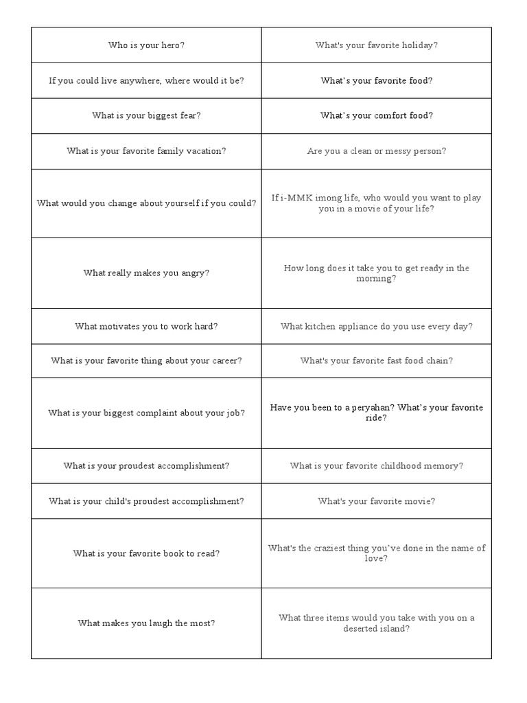 Get To Know You Questions For Work Printable