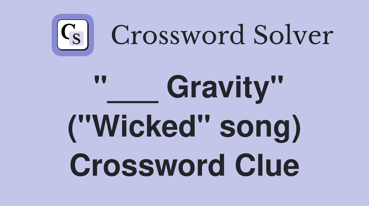 Gravity" ("Wicked" song) Crossword Clue Answers Crossword Solver