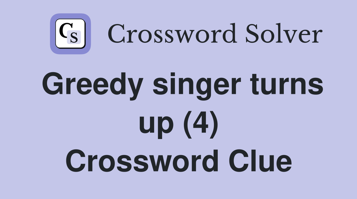 Greedy singer turns up (4) Crossword Clue Answers Crossword Solver