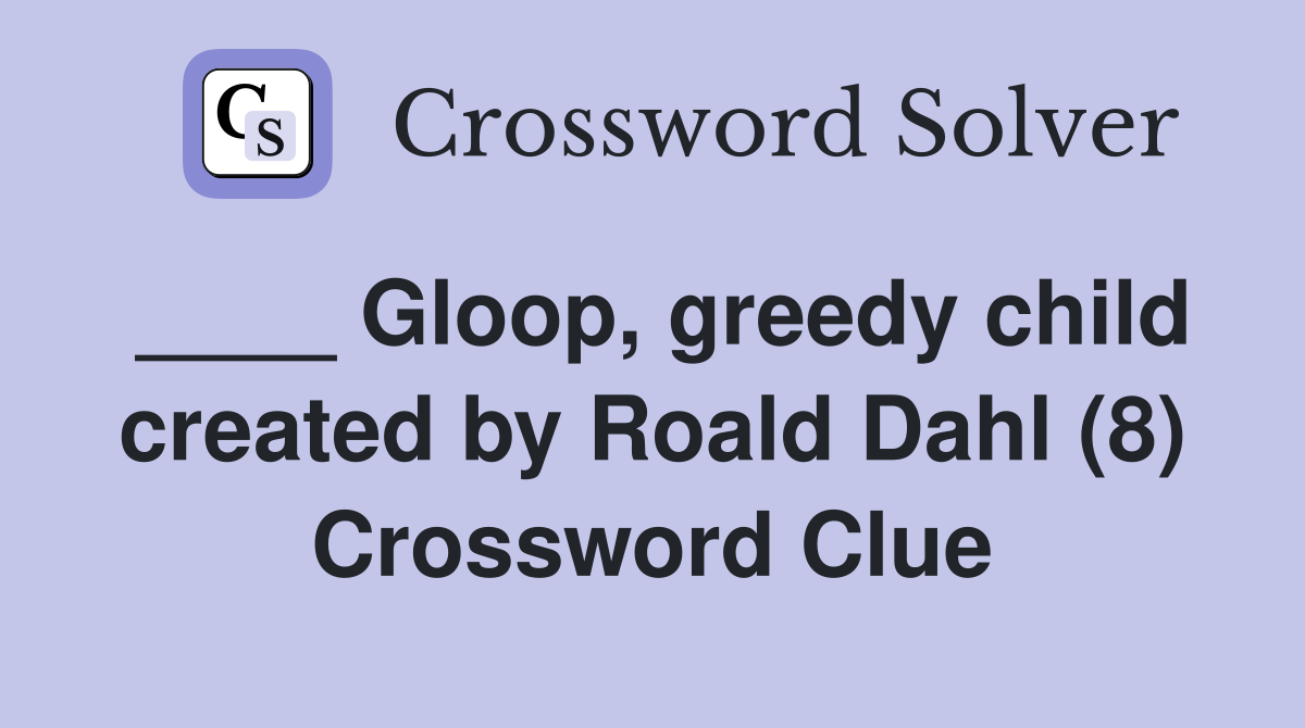 Gloop, greedy child created by Roald Dahl (8) Crossword Clue Answers