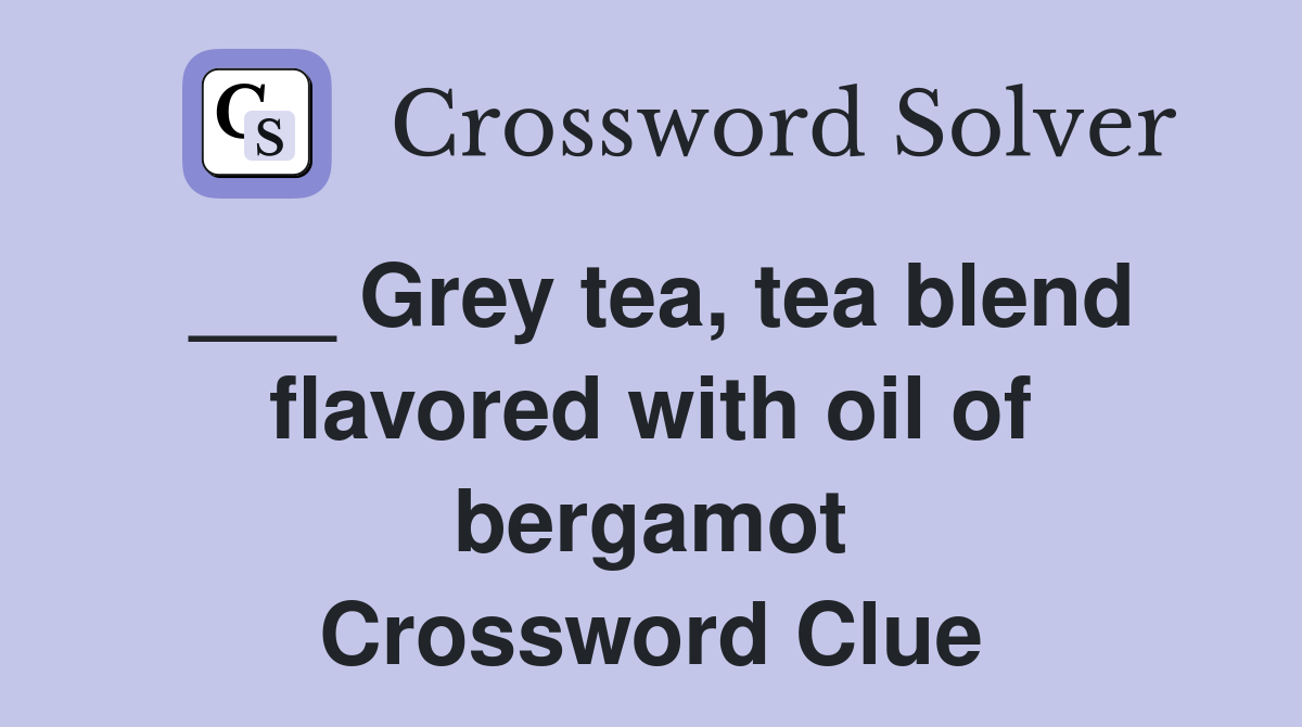 We cracked the code and found the 4. Here is the answer for the crossword clue ___ grey tea featured on january 7, 2025. If you're looking for help with the ___ grey tea clue in daily themed crossword, we have the answer to assist you with your puzzle. There are related clues (shown below). We have found 40 possible.