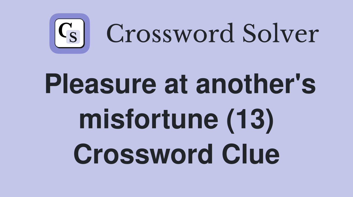 Pleasure at another's misfortune (13) Crossword Clue Answers