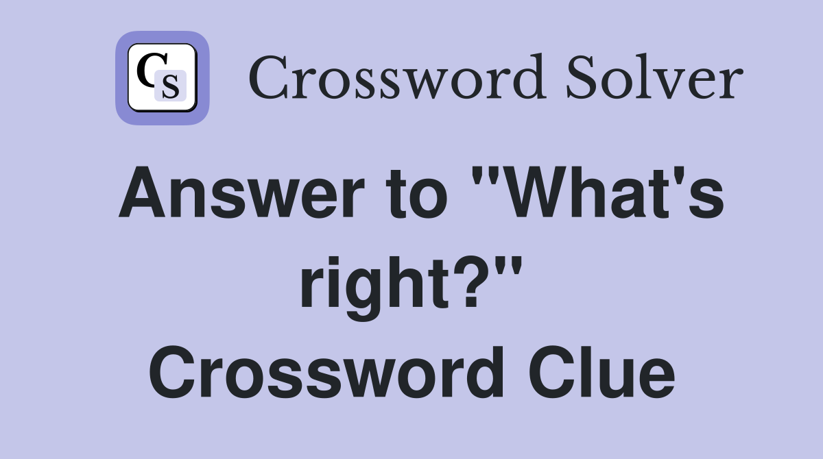 Answer to "What's right?" Crossword Clue Answers Crossword Solver