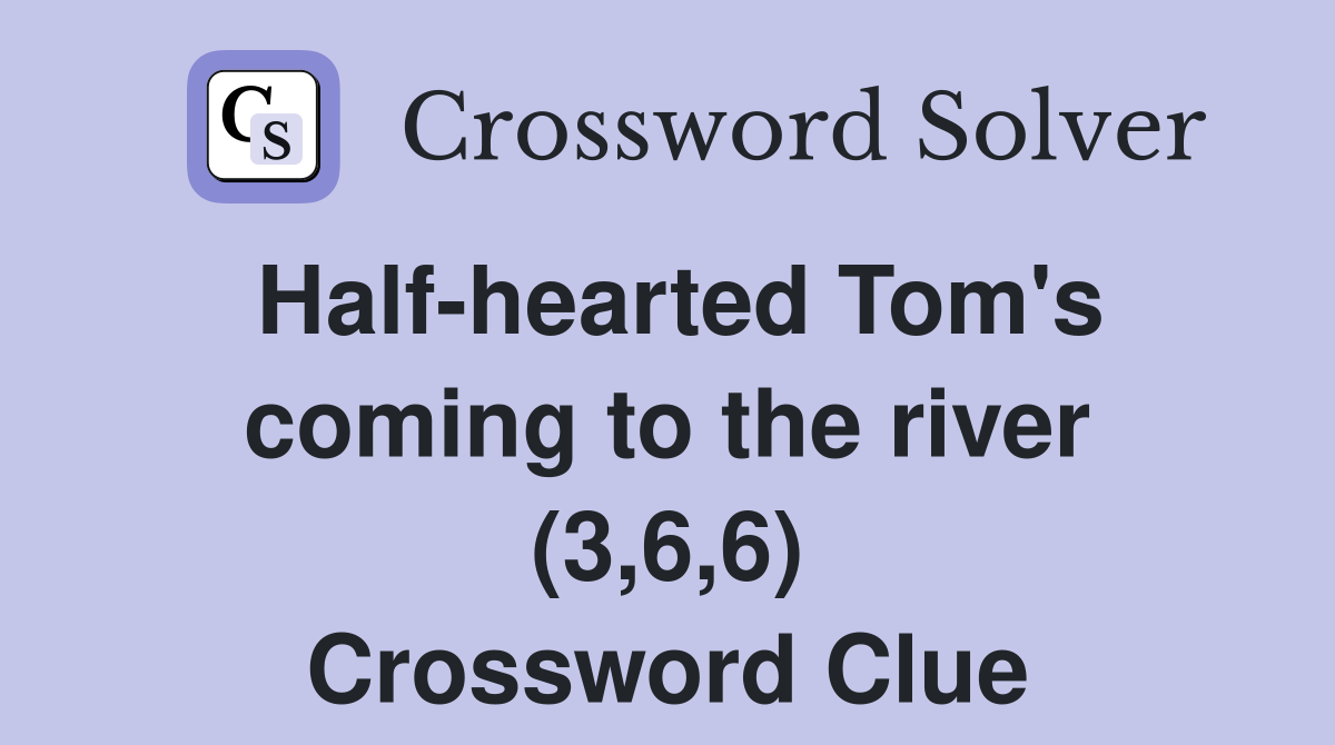 Halfhearted Tom's coming to the river (3,6,6) Crossword Clue Answers