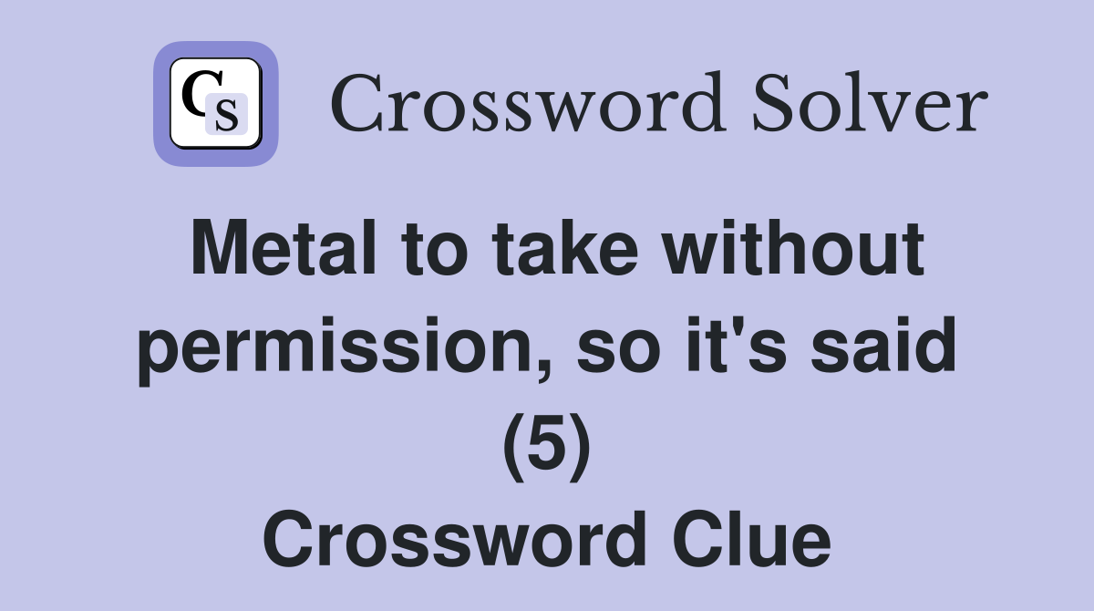Metal to take without permission, so it's said (5) Crossword Clue