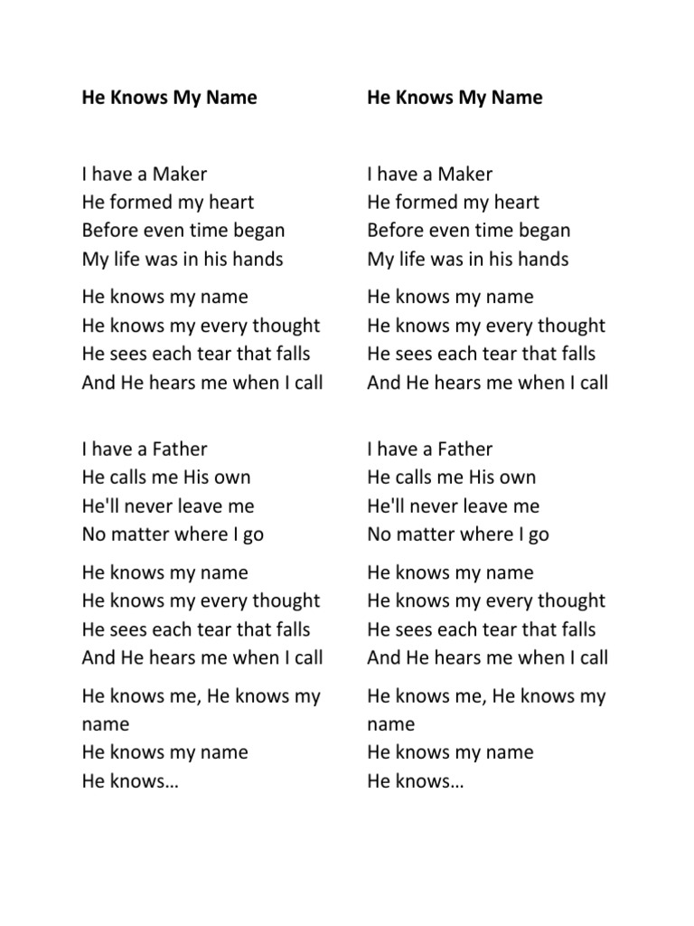 He Knows My NameLyrics PDF