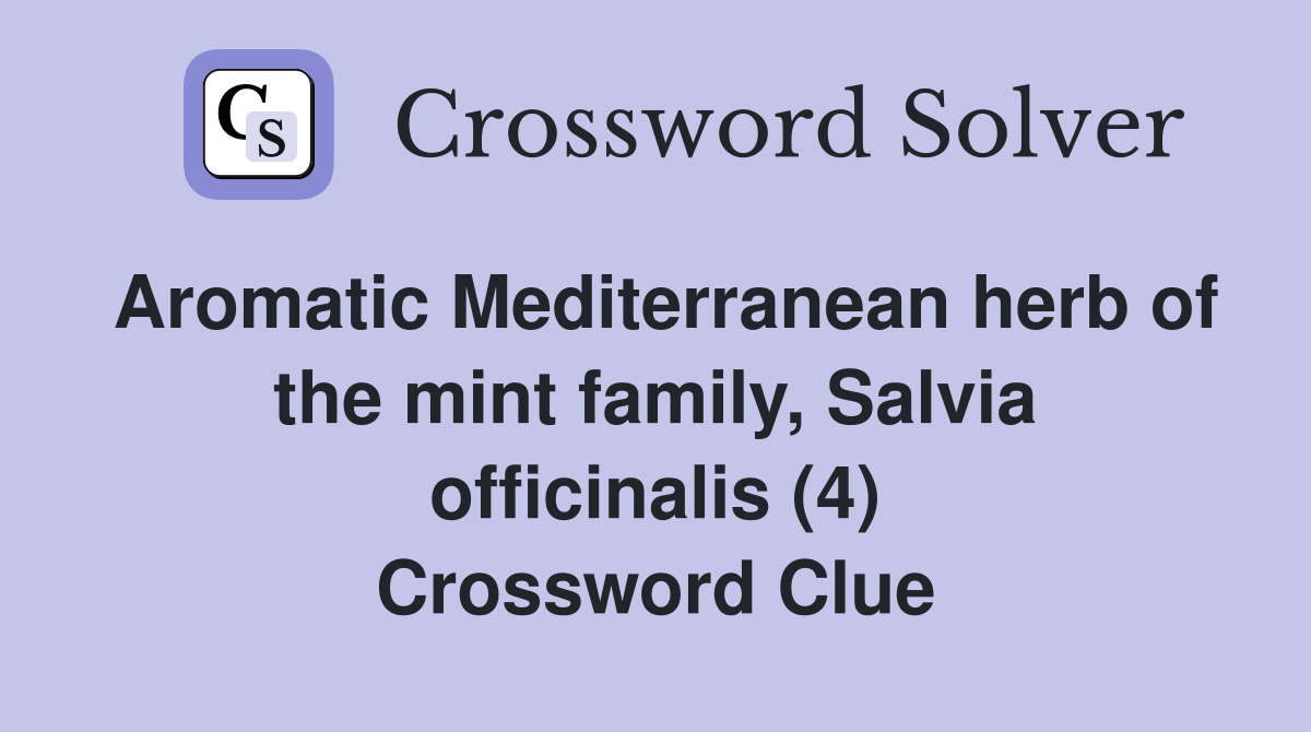 Here is the answer for the crossword clue a herb of the mint family (5). We have found 40 possible answers for. Today's crossword puzzle clue is a quick one: The crossword solver finds answers to classic.