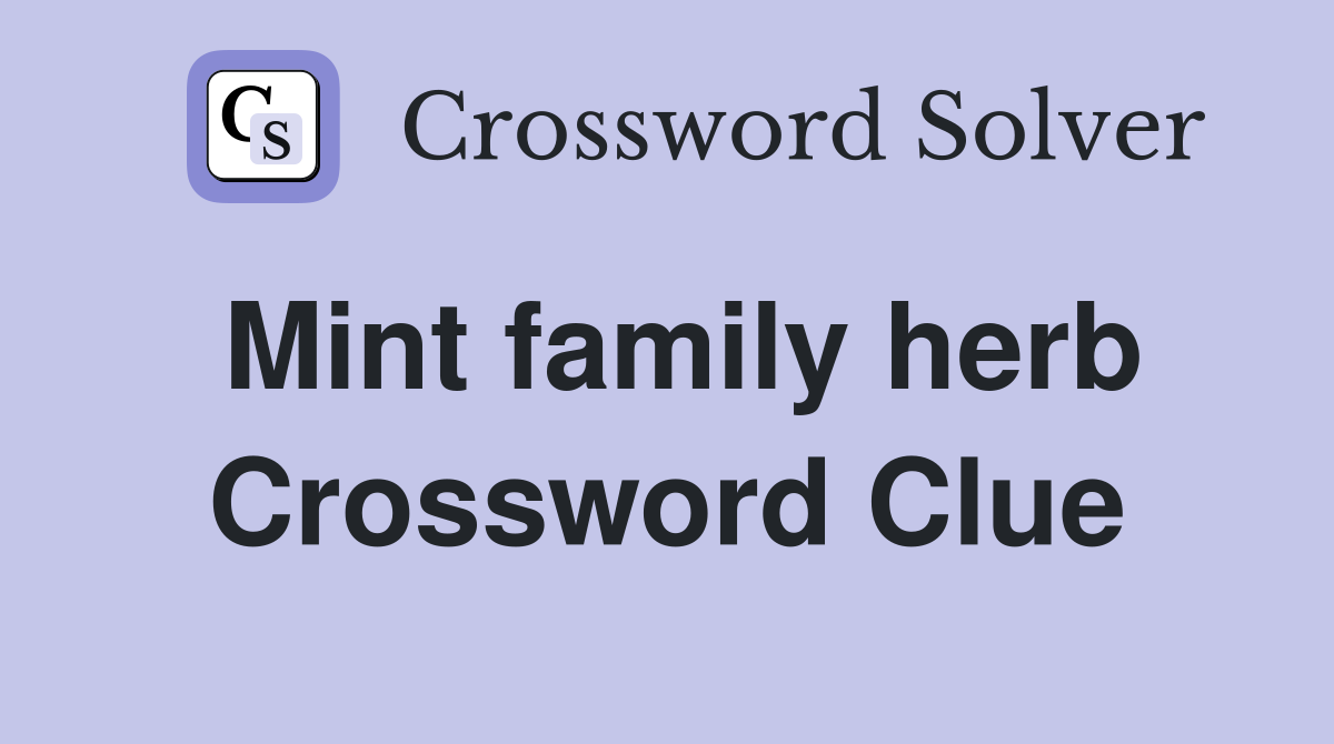 Herb of the mint family. We have 6 solutions to the crossword puzzle mint family herb. Mint family herb is a crossword puzzle clue that we have spotted over 20 times. We will try to find the right answer to this particular crossword clue. The longest solution is marjoram with 8 letters and the shortest.