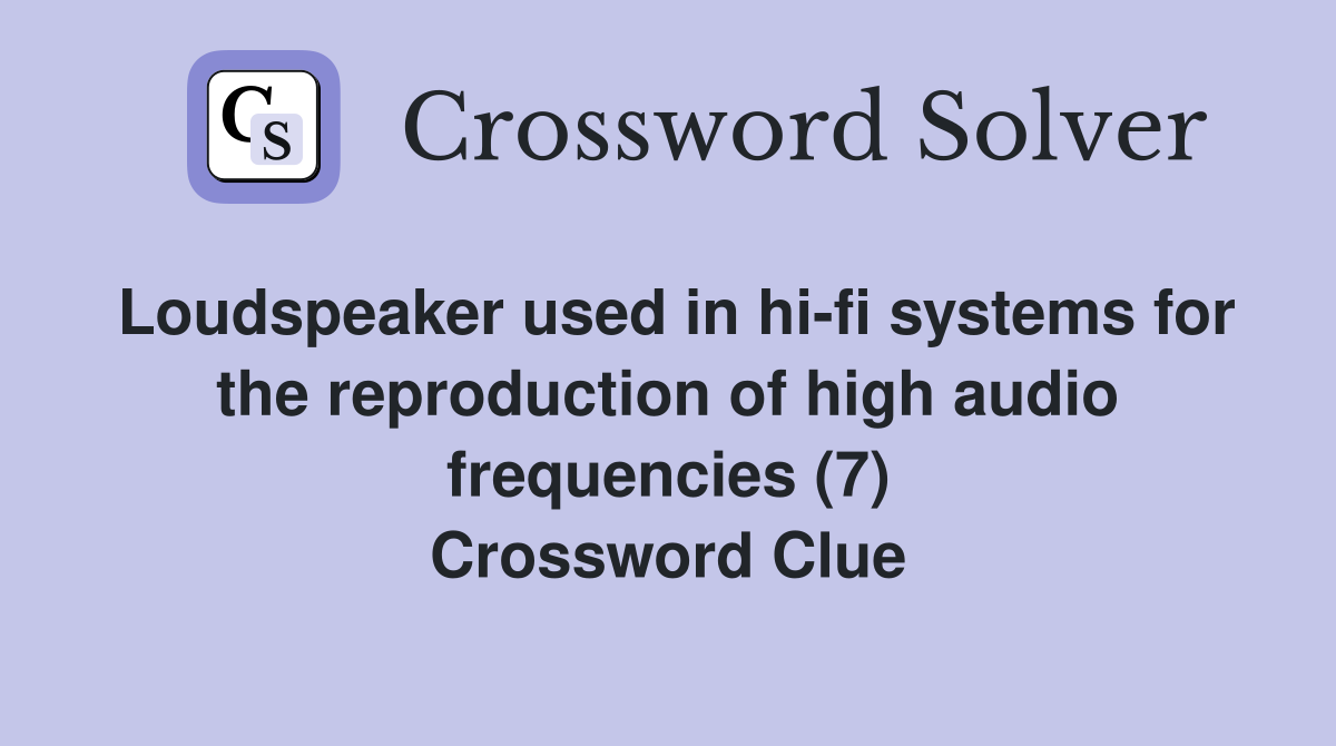 1 answer to this clue. We have found 40 possible answers for this clue in our database. We have found 40 possible answers for this clue in our database. Today's crossword puzzle clue is a quick one: The crossword solver found 30 answers to hi fi (6), 6 letters crossword clue.