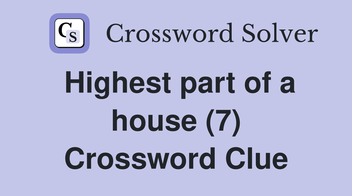 Highest part of a house (7) Crossword Clue Answers Crossword Solver