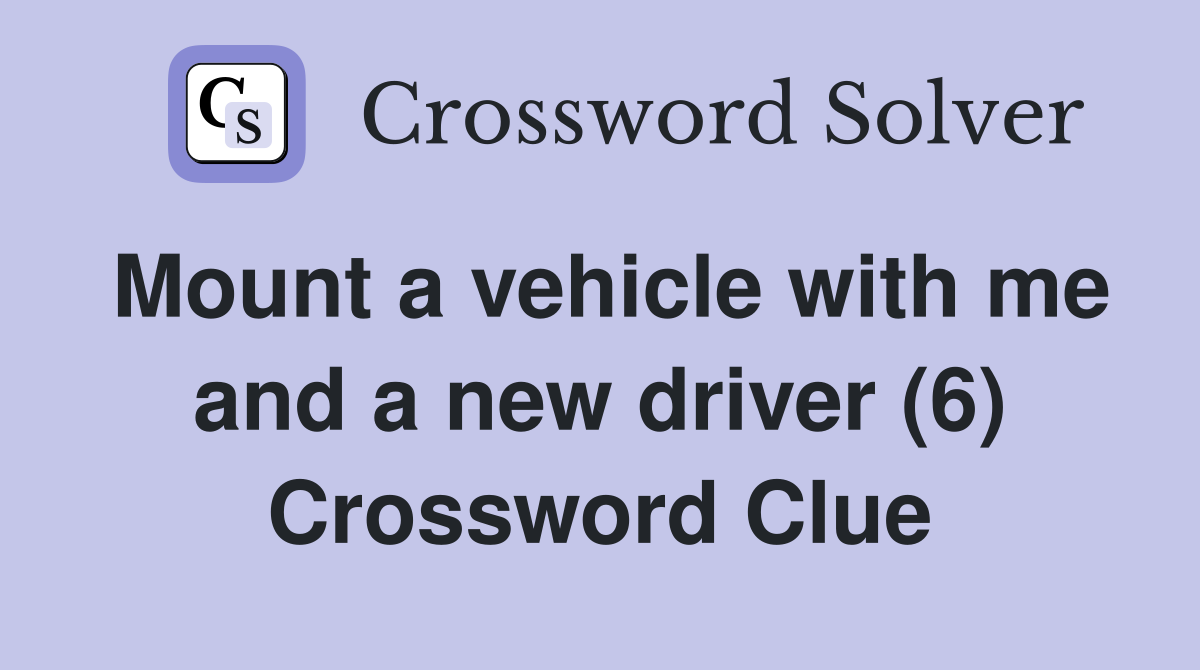 Mount a vehicle with me and a new driver (6) Crossword Clue Answers