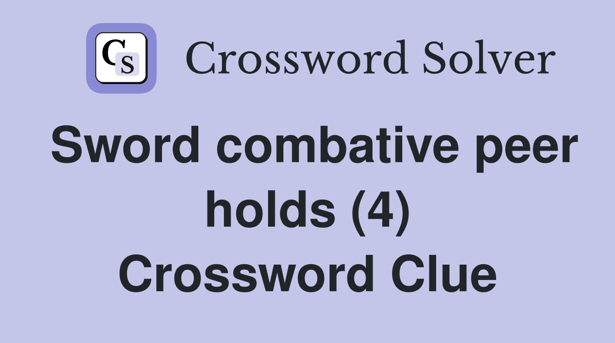 Sword combative peer holds (4) Crossword Clue Answers Crossword Solver