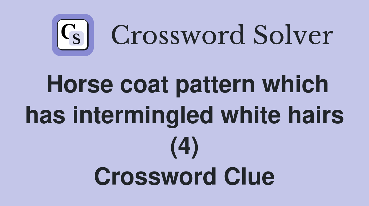 If you haven't solved the crossword clue horse coat color yet try to. The most common solution for the crossword clue horse coat color are roan with 4 letters. The crossword solver found 30 answers to horse coat color, 4 letters crossword clue. Ny times, daily celebrity, telegraph, la times and. We have found 40 possible answers for this clue in. All crossword answers with 4 letters for horse coat color found in daily crossword puzzles: We found 42 answers for the crossword clue horse coat color. Did you find the answer for type of horse coat color? Among them, one solution stands out with a 98 % match which has a length of 4. To go back to the main post you can click in this link and it will redirect you to.