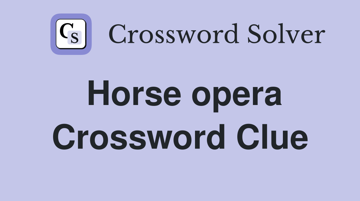 Solve your horse opera crossword puzzle fast & easy. Here is the answer for the crossword clue horse opera last seen in newsday puzzle. Among them, one solution stands out. There are related clues (shown below).