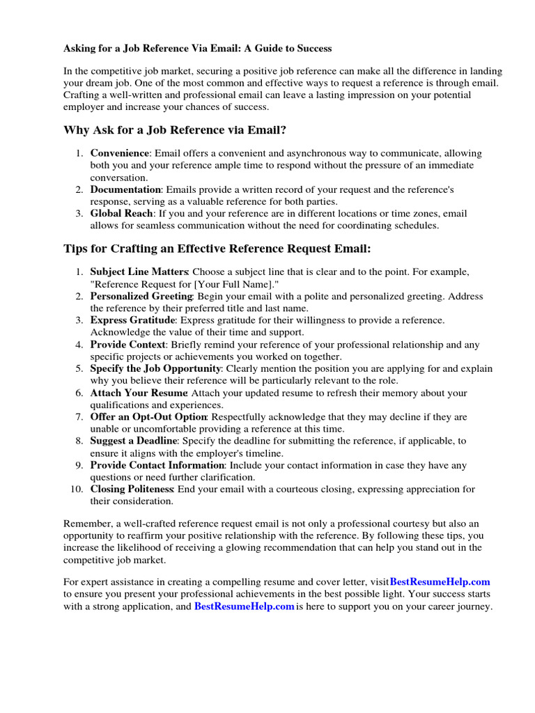 Need to ask an old boss or former coworker to be your reference? Reference request emails are a call for help from someone you trust to say nice things about you. Learn how to ask someone for a professional reference, and use our email templates and examples to write an effective email asking someone to be a reference. Here are.