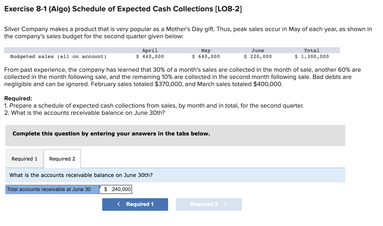 Solved Exercise 81 (Algo) Schedule of Expected Cash