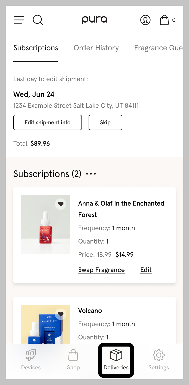 Update Shipping Address Account and Subscription Management Support