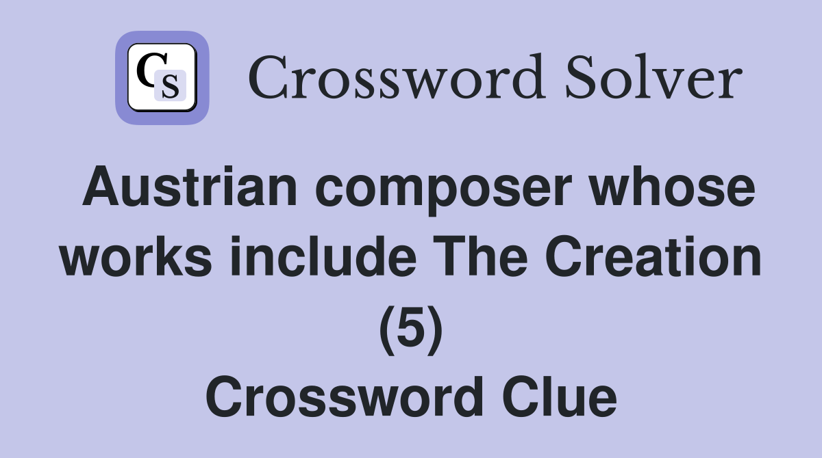 Austrian composer whose works include The Creation (5) Crossword Clue