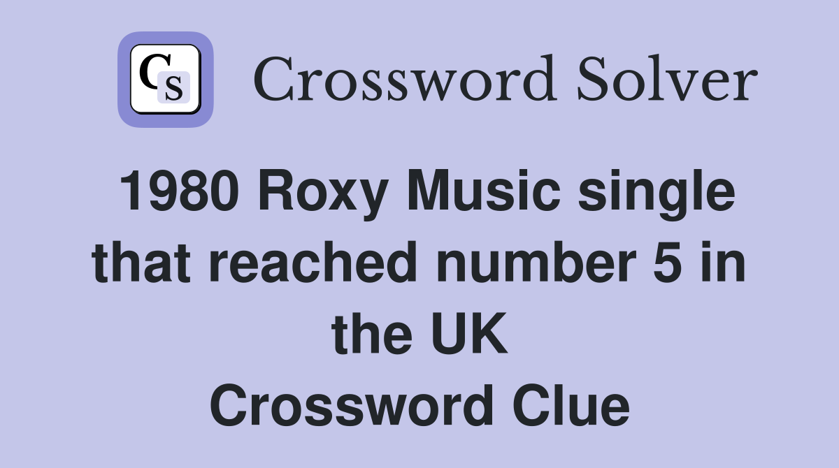 1980 Roxy Music single that reached number 5 in the UK Crossword Clue