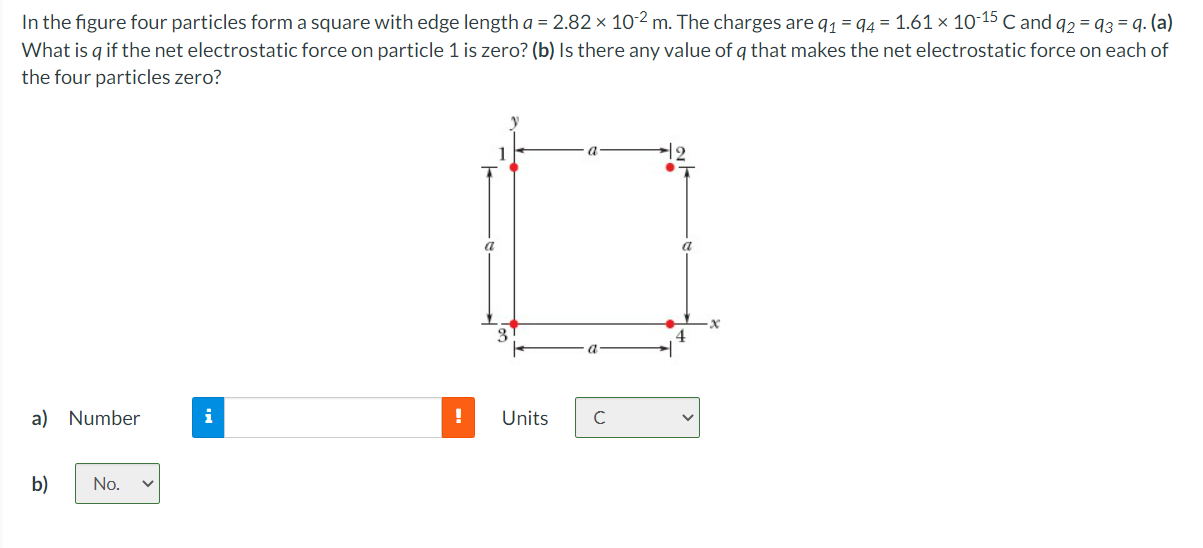 (a) what is q/q if the net electrostatic force on particles 1 and 4. 00 cm and have charges, q 1 = + 10. The charges are q1 = q4 = q and q2 = q3 = q. Click here:point_up_2:to get an answer to your question :writing_hand:in fig 2235 the four particles form a square of edge length a500 cm.