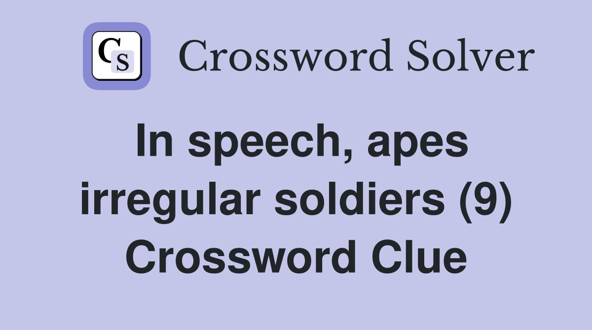 In speech, apes irregular soldiers (9) Crossword Clue Answers