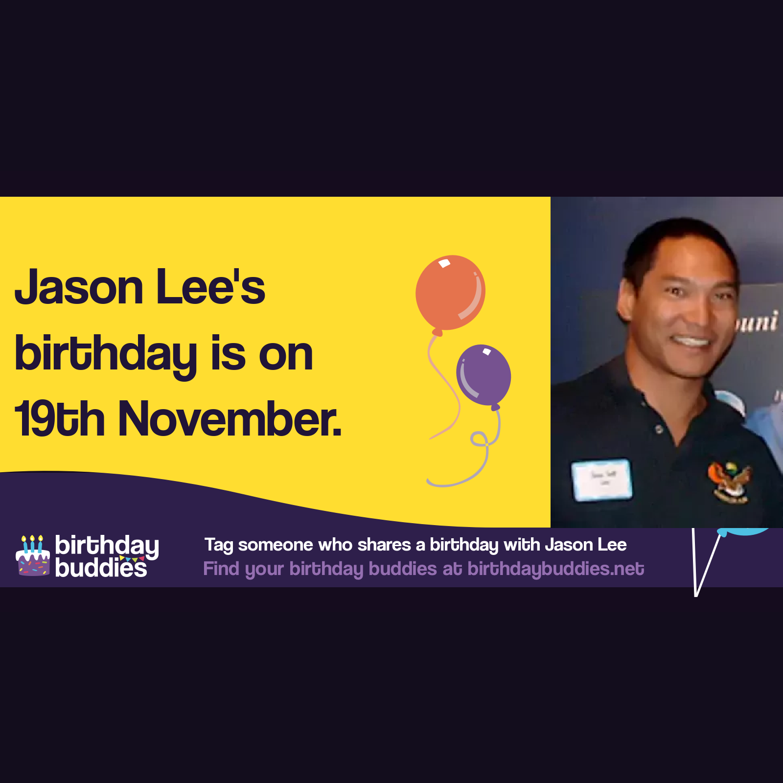 Jason Lee's birthday is 19th November 1966
