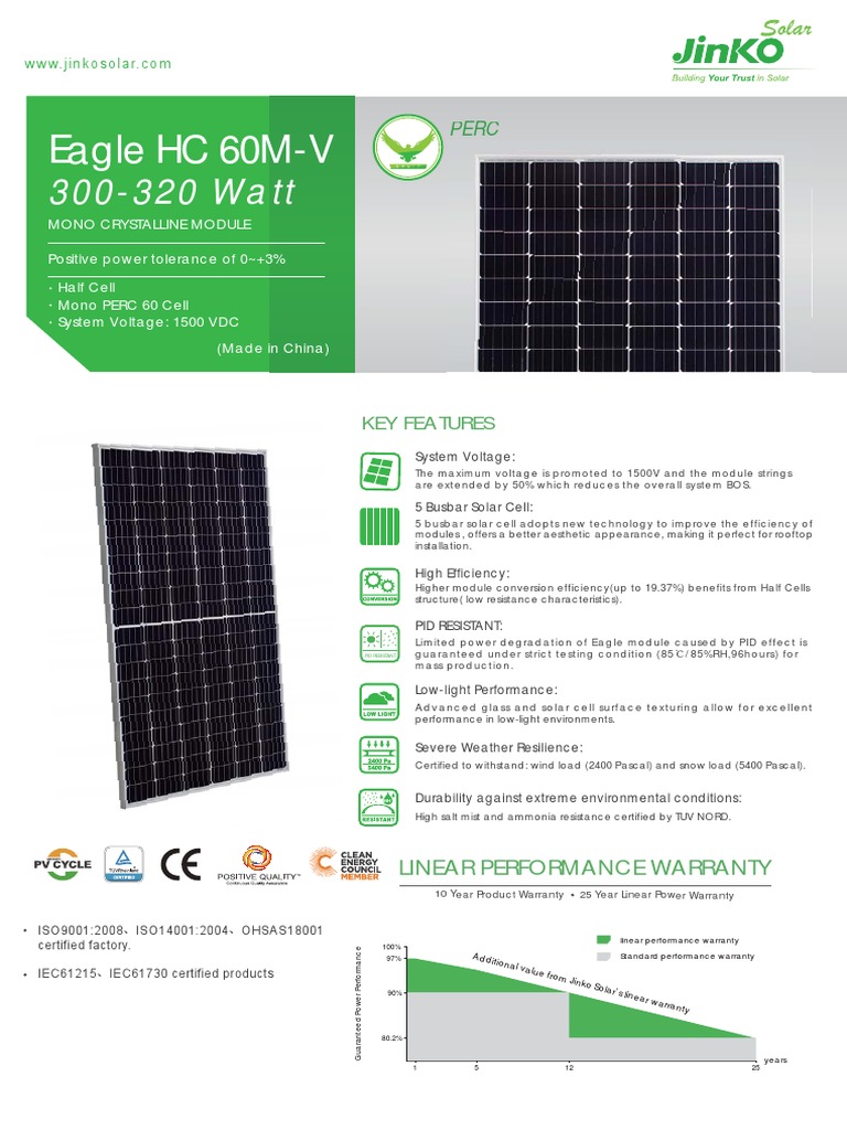 Fiche Technique Jinko JKM300 320M 60H V A2 en PDF Solar Cell
