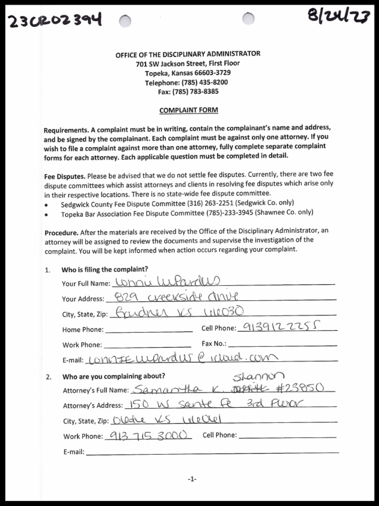 08.26.2023 Complaint Against Johnson County Kansas ADA Samantha K