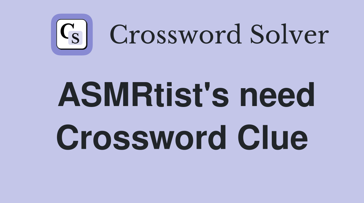 ASMRtist's need Crossword Clue Answers Crossword Solver