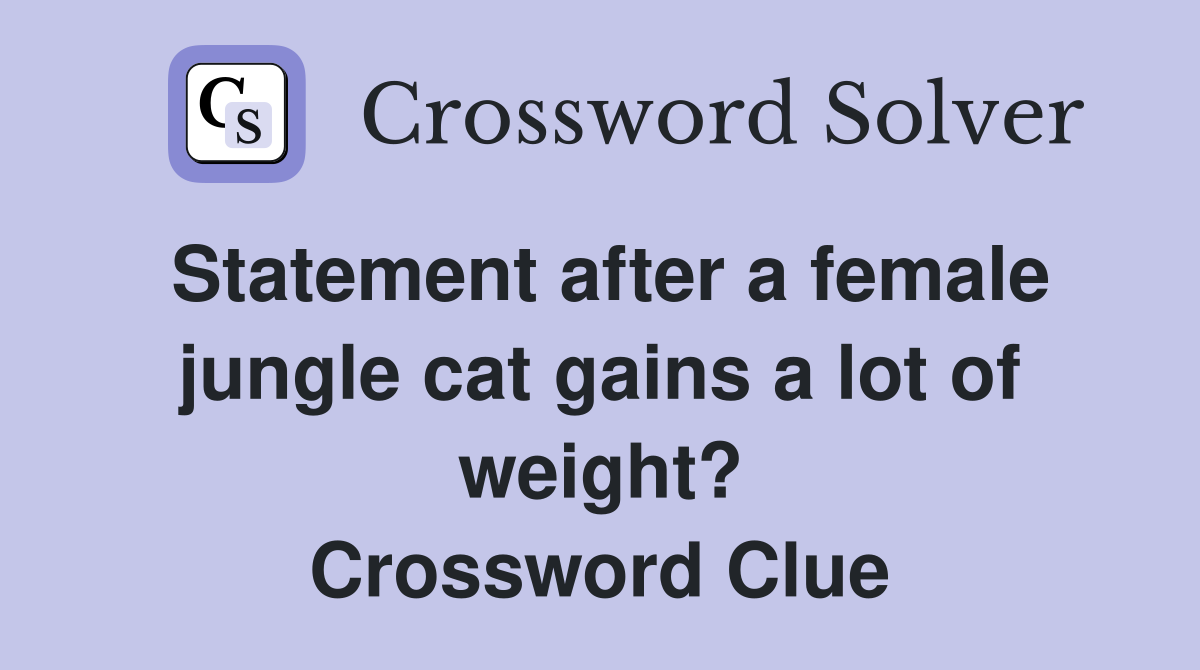 Statement after a female jungle cat gains a lot of weight? Crossword