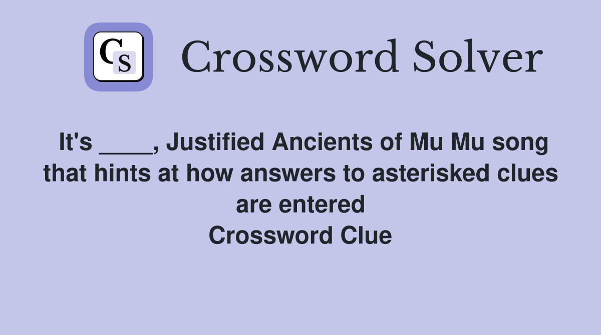 It's ____, Justified Ancients of Mu Mu song that hints at how answers