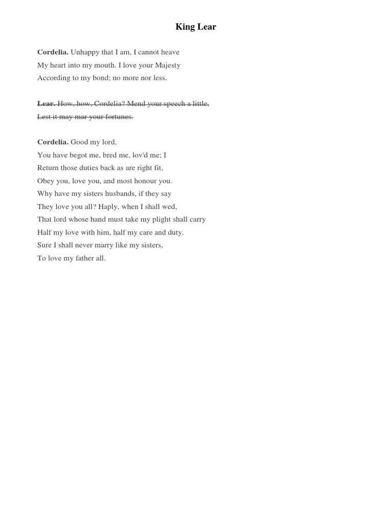 King Lear Cordelia Monologue - Since what i well intend,. Unhappy that i am, i cannot heave my heart into my mouth. Obey you, love you, and most honour you. The monologues are organized by play, then categorized by comedy, history and tragedy. Mend your speech a little, lest it may mar your fortunes. You can browse and/or search.