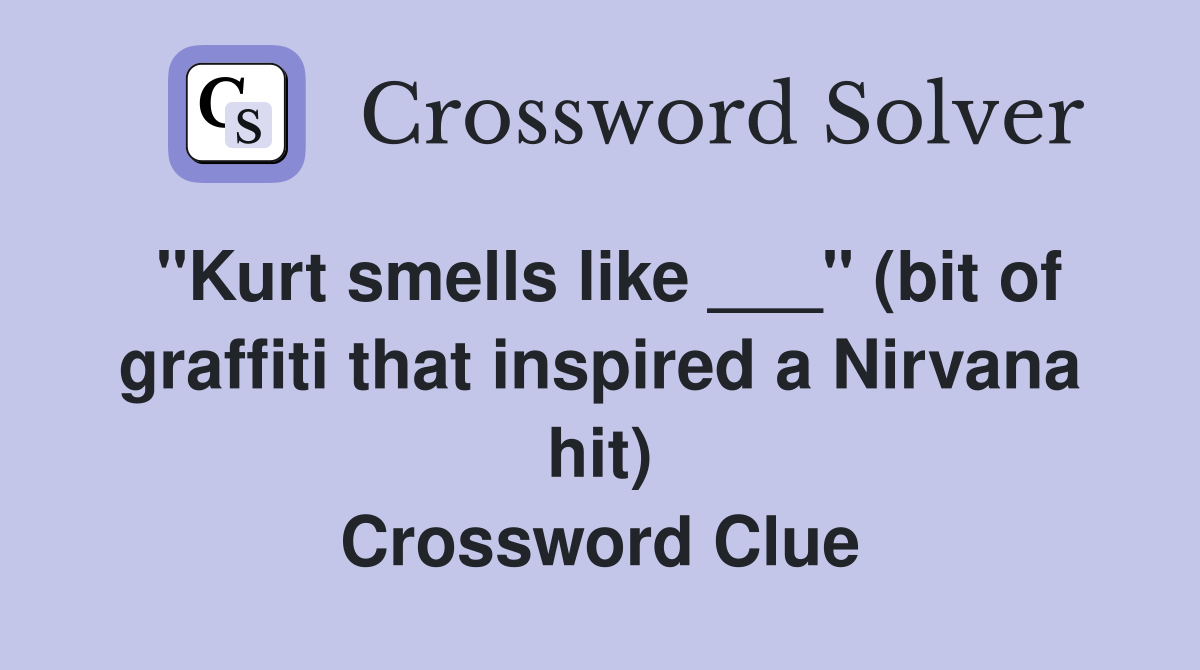 "Kurt smells like ___" (bit of graffiti that inspired a Nirvana hit