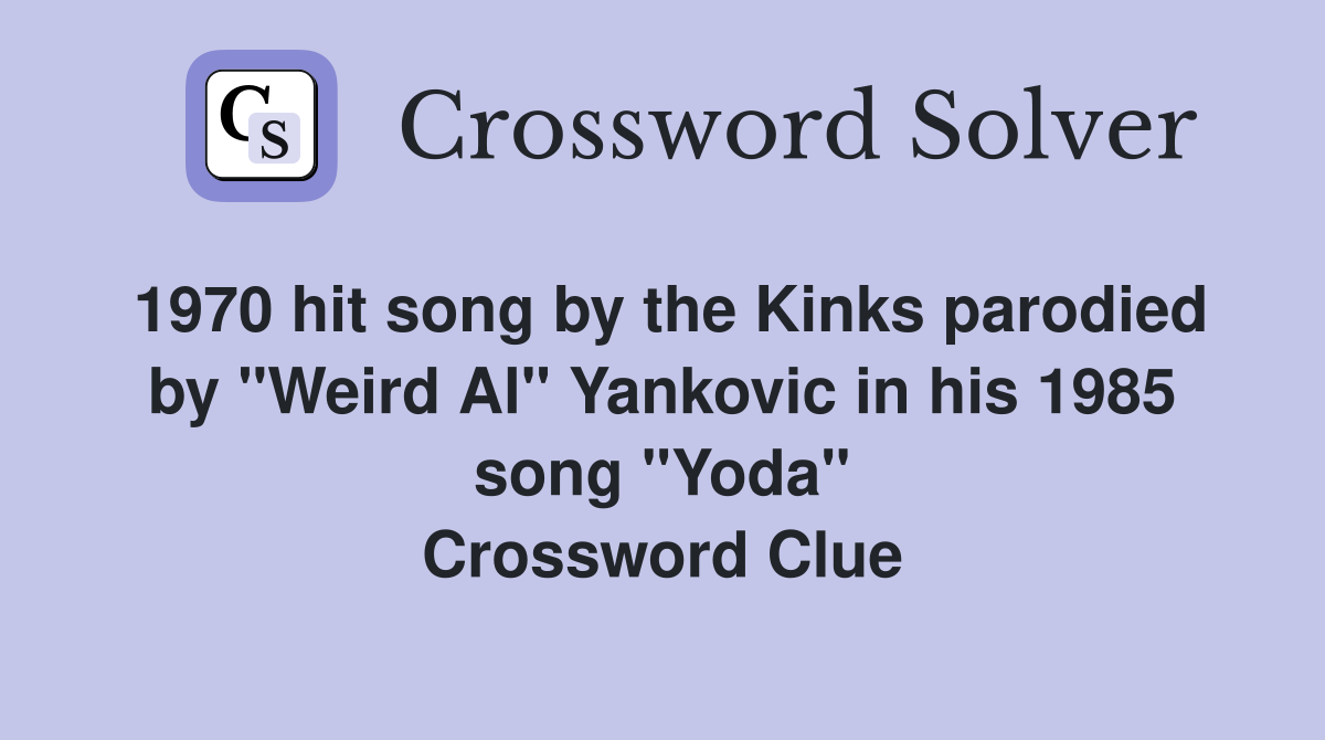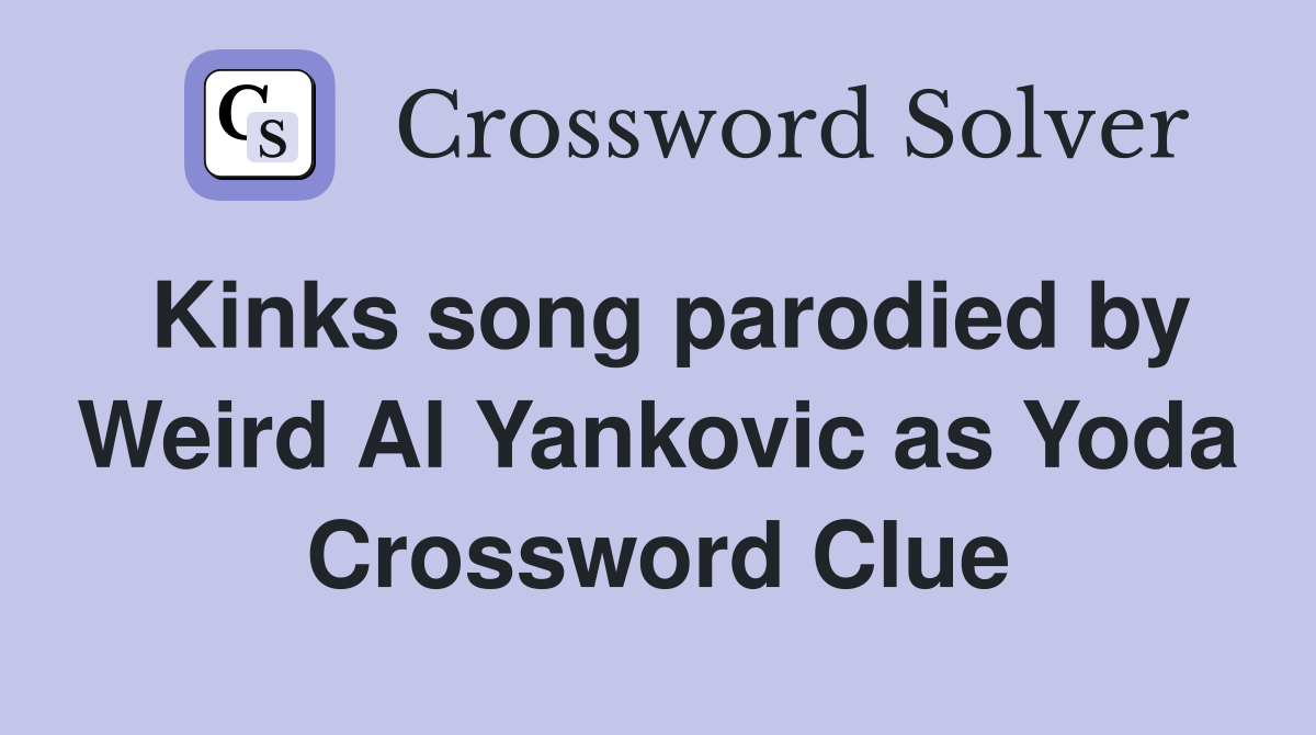 Kinks song parodied by Weird Al Yankovic as Yoda Crossword Clue