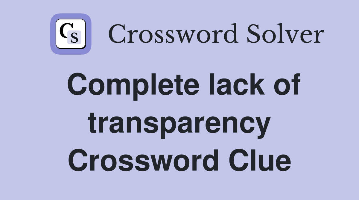 The crossword solver found 30 answers to lack of transparency (7), 7 letters crossword clue. Here is the answer for the: Here is the answer for the crossword clue lack of transparency last seen in universal puzzle. Lack of transparency universal crossword clue. We have found 40 possible answers for this clue in our database.