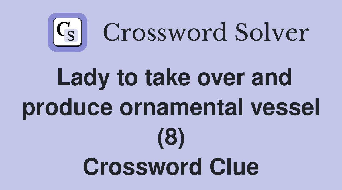 Lady to take over and produce ornamental vessel (8) Crossword Clue