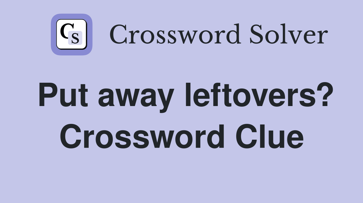 Put away leftovers? Crossword Clue Answers Crossword Solver