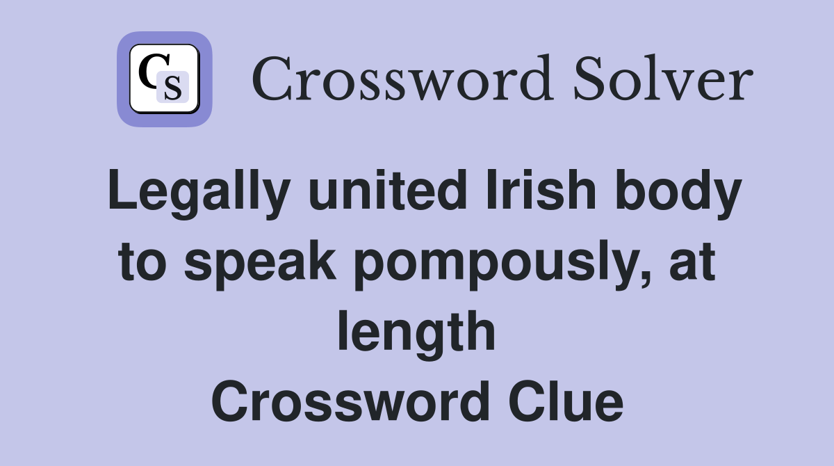 All crossword answers with 5 & 6 letters for legally found in daily crossword puzzles: The longest solution is appropriately with 13 letters and the shortest solution is. We will try to find the right answer to this particular crossword clue. The crossword solver finds answers to classic crosswords and.