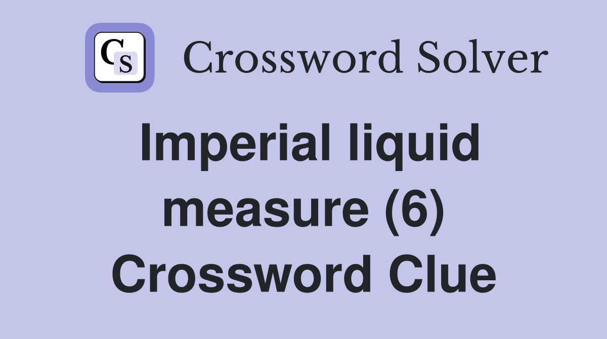 Imperial liquid measure (6) Crossword Clue Answers Crossword Solver