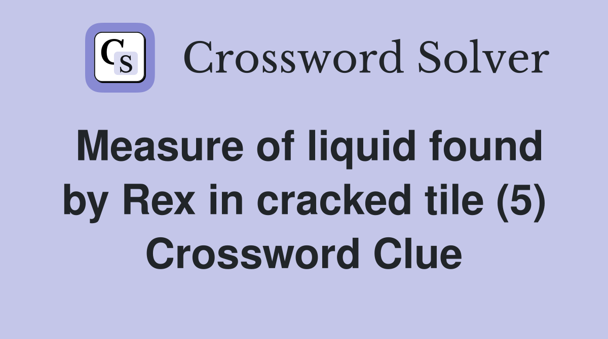 Measure of liquid found by Rex in cracked tile (5) Crossword Clue