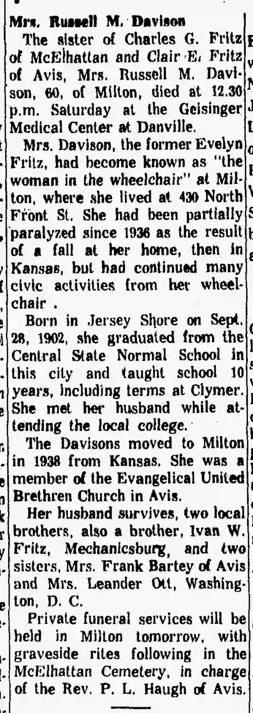 Obituary, The Express, Lock Haven PA, 19 Jul 1972