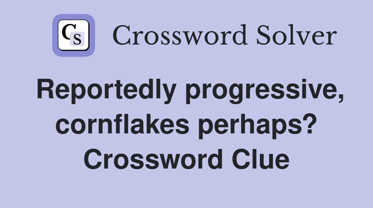 Reportedly progressive, cornflakes perhaps? Crossword Clue Answers