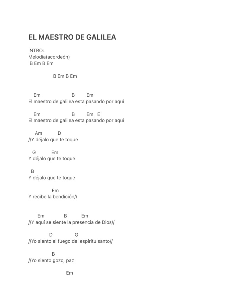 Letra y acordes de guitarra. B em b em b em b em / em b em el maestro de galilea esta pasando por aquí em b em e el maestro de. B em b em b em b em / em b em el maestro de galilea esta pasando por aquí em b em e el maestro de. By.