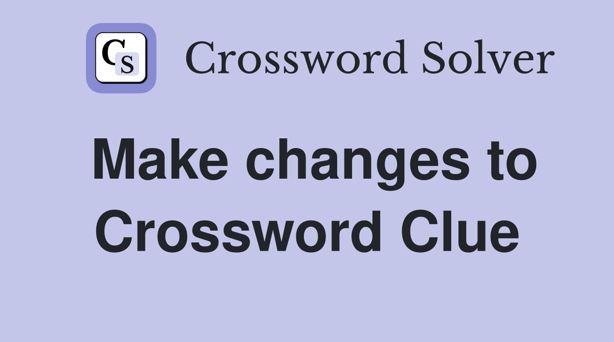 There are related clues (shown below). We will try to find the right answer to this particular crossword clue. Today's crossword puzzle clue is a quick one: Make changes to is a crossword clue for which we have 5 possible answer in our database. The crossword solver finds answers to classic.