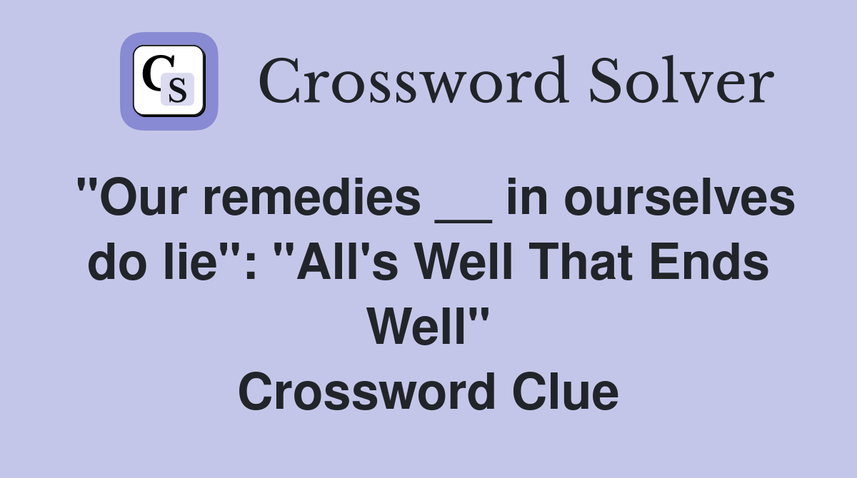 "Our remedies __ in ourselves do lie" "All's Well That Ends Well