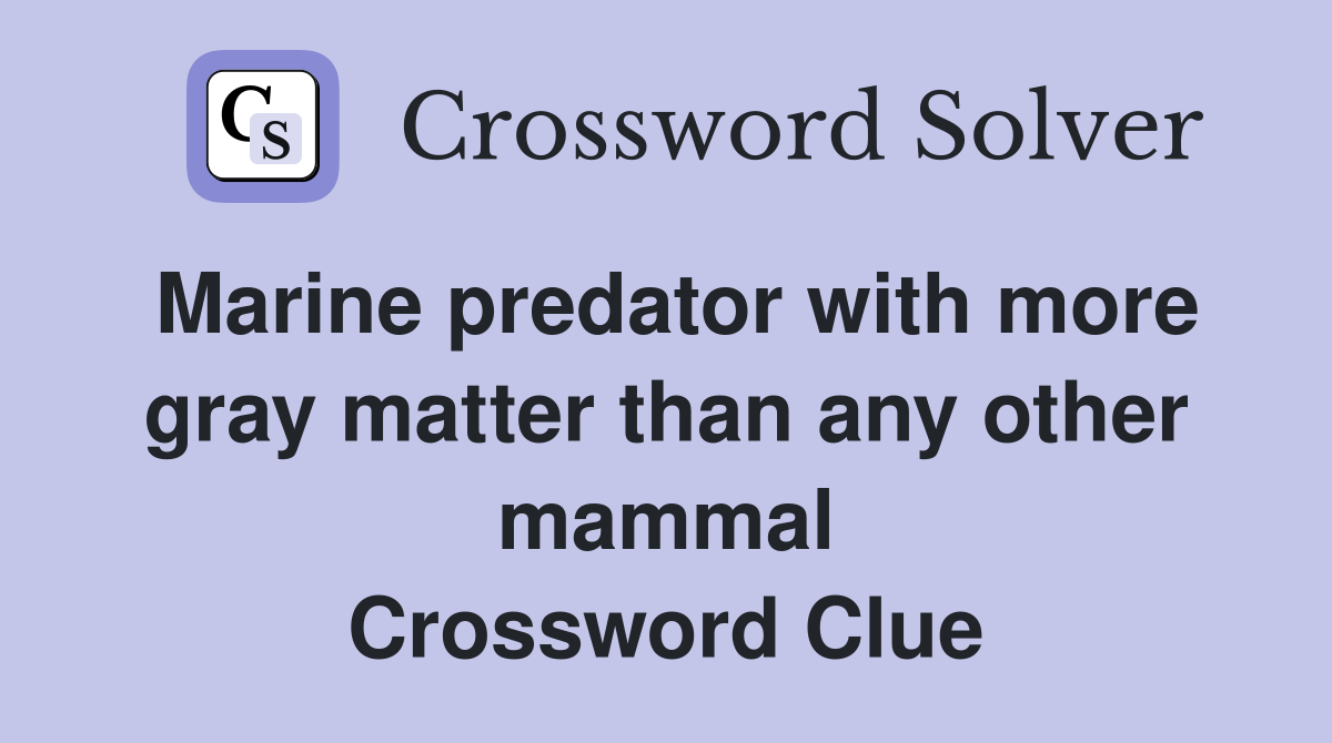Here is the answer for the crossword clue marine predator last seen in la times daily puzzle. Solve your marine predator crossword. Here are the possible solutions for marine predator clue. The crossword solver found 30 answers to marine predator (5), 5 letters crossword clue. Marine predator is a crossword puzzle clue that we have spotted over 20 times.